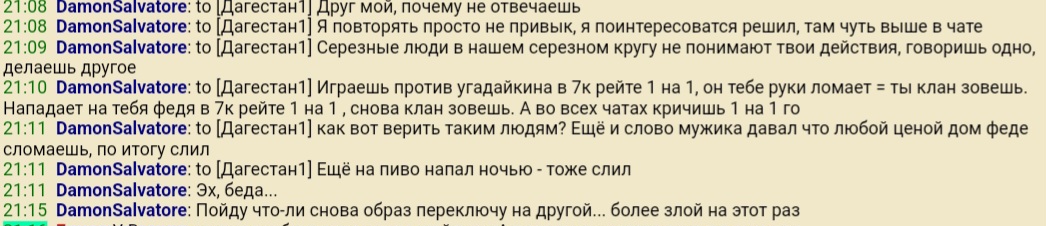 Забавный побочный эффект - автор получил халявный потолок за счет этого вмешательства. Тогда же удалось наблюдать реплики Элвиса в боевом чате, которые не сохранились, но в целом содержание было примерно одинаковым с вышеприведенным монологом