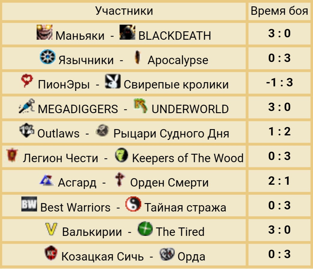 Казаками. Сам бой прошёл в целом весело и без большого напряга, 20 КС за синих против 22 Ордынцев (без учёта сильно опоздавшего Кислого). Результат 3:0 в пользу красных устраивал обе стороны, т.к. не всем нужна Премьерка на следующий год.