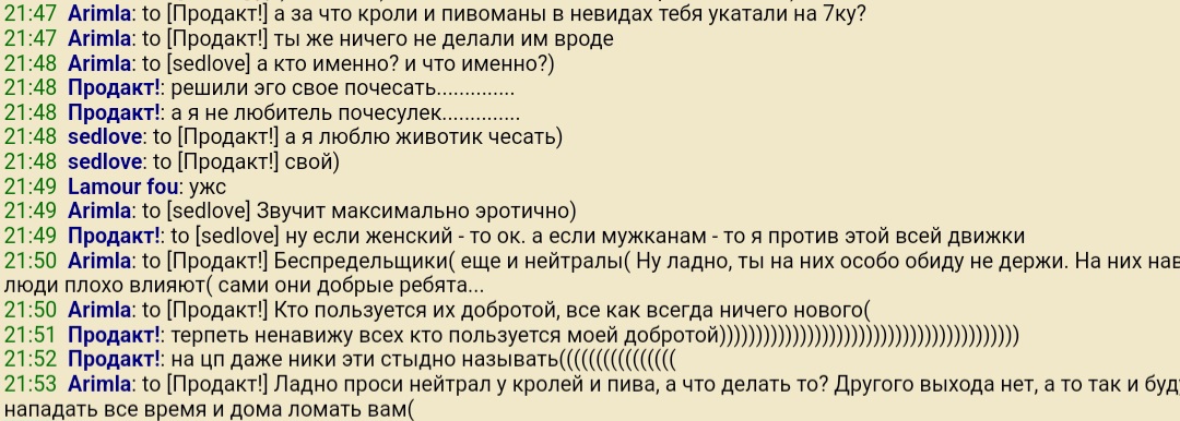Продакта. Видимо обиделся Иван за тот случай, когда его невиды ушатали. А судя по более поздним чатам на ЦП (отрывок прилагается), мог и принять "допинг" для веселья: