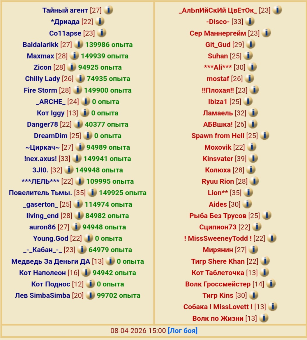 Кинса тоже надо бить) с учётом отсутствия силового блага (экономить надо, хотя в хаотах боль и страдание). Забегая вперёд, в 1-м же раунде клон "Кисы" и уронил автора критом мимо блока. А ещё кое-кого повыкидывали с обеих сторон (стыд и позор!!!). Хотя в целом у синих команда была крепкая с достаточным количеством почти-фуллов.
