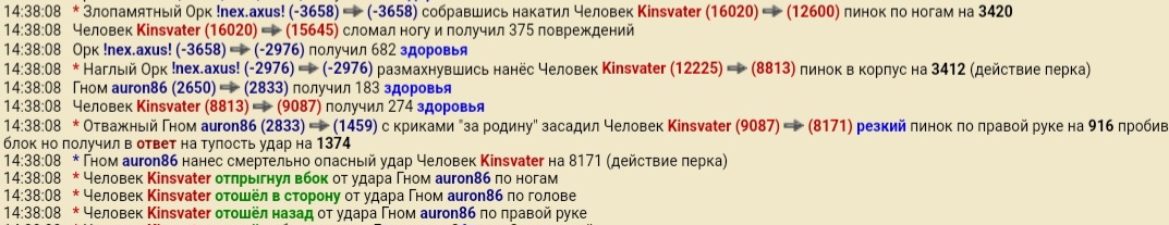 Лог боя тут, для тех, кому интересно посмотреть "в записи". Вроде достаточно динамично и интересно вышло, с разными подъемами, перемещениями и прочей боевой магией. Особенно впечатлил этот момент: